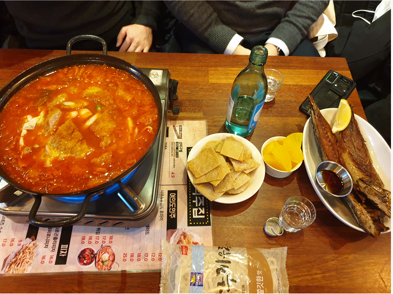 처음에 김치돈까스나베(?) 하나와 소주 한병을 시켰는데