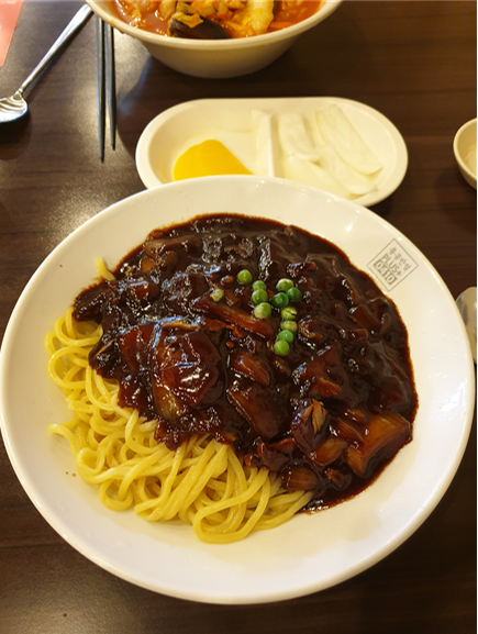 짜장면을 먹었는데 그럭저럭 맛있게 먹었다.