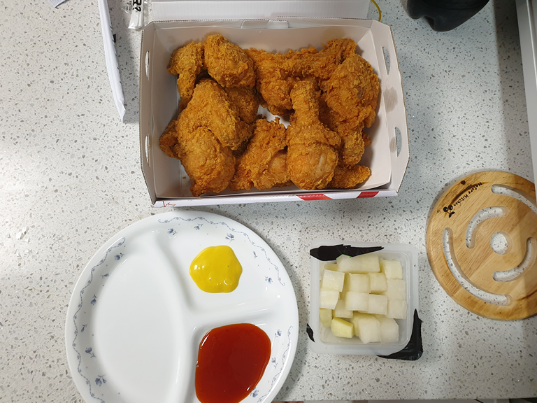 월요일 저녁에는 대학교 형이 생일 선물로 보내준 BHC 황금올리브 치킨을 시켜먹었다.