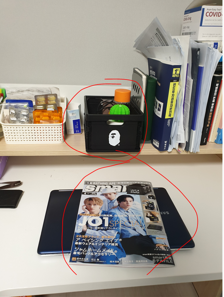 형이 집들이 선물로 밑에 일본 잡지와 함께 이 잡지를 사면 주는 사은품인 베스베이프(BATH BAPE?)라는 것을 주었다.