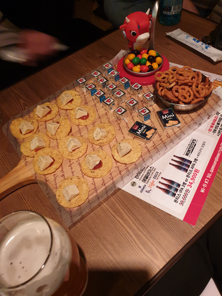 맥주와 함께 찰칵치즈라는 음식을 먹었는데 조합이 너무 좋았다. ㅎㅎ