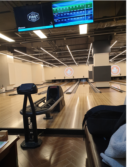 어렸을때 축구부에서 비오면 볼링장에 갔는데 그때는 스핀도 넣고 했는데 지금은 완전 초짜다.