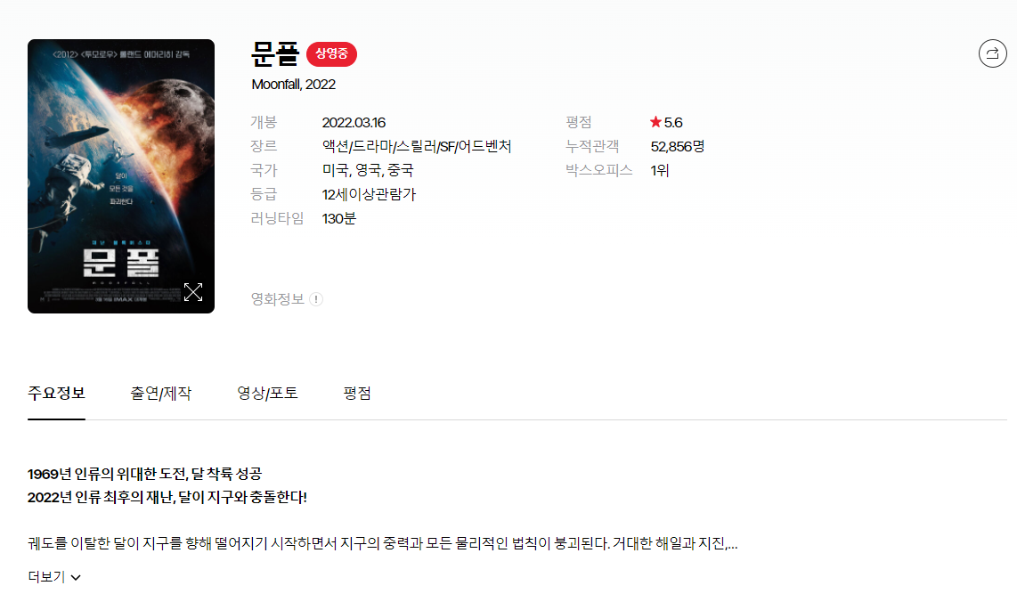 [일상] 재난블록버스터 영화 '문폴' (MOON FALL) 후기 -스포 X- 본문