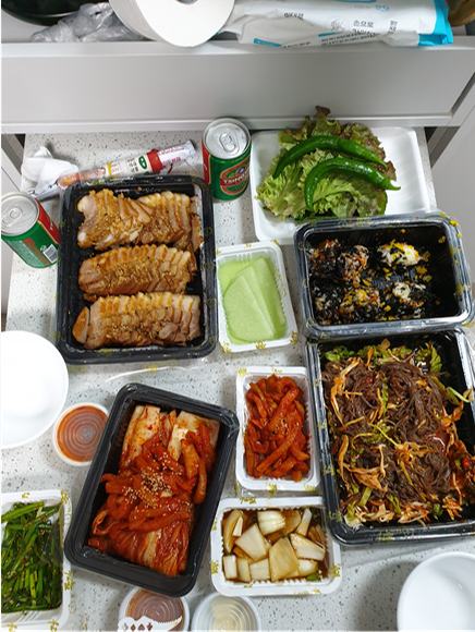 다음날 늦게 일어나서 형과 점심으로 진심을담아내다 고기장인에서 목살과 삼겹살을 시켜먹었다.