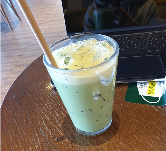 기프티콘 메뉴가 소진되었다해서 같은 가격(6,100원)인 유기농말차로 만든 라떼를 먹어봤다.