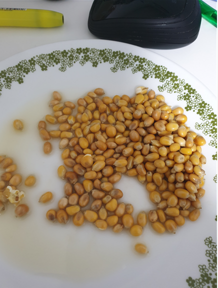 집에서 엄마가 전자레인지에 조리해먹는 팝콘을 세개 주셨는데 처음 해먹었다가 팝콘이 태어나지 못해서 망했다.