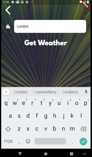 텍스트필드에 런던을 친후 Get Weather 버튼을 누르면 런던의 날씨를 얻어올 수 있다.