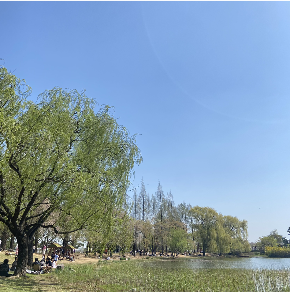 멀리는 못가고 근처 입구의 잔디밭에서 돗자리를 깔고 힐링하고왔다.