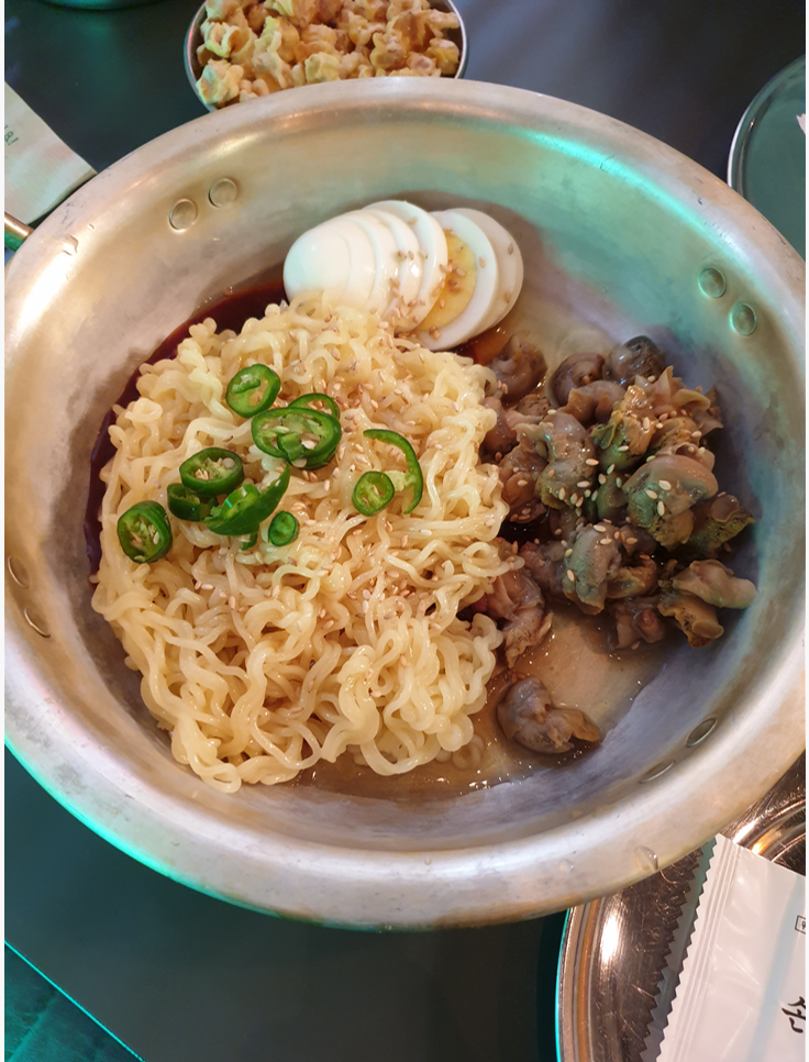 맥주와함께 골뱅이비빔면을 먹었다. 신기한게 골뱅이비빔면이 소면이아니라 라면인건 처음봤다.