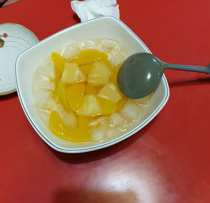 여기서도 맥주와 함께 황도를 먹었다. 시원했다.
