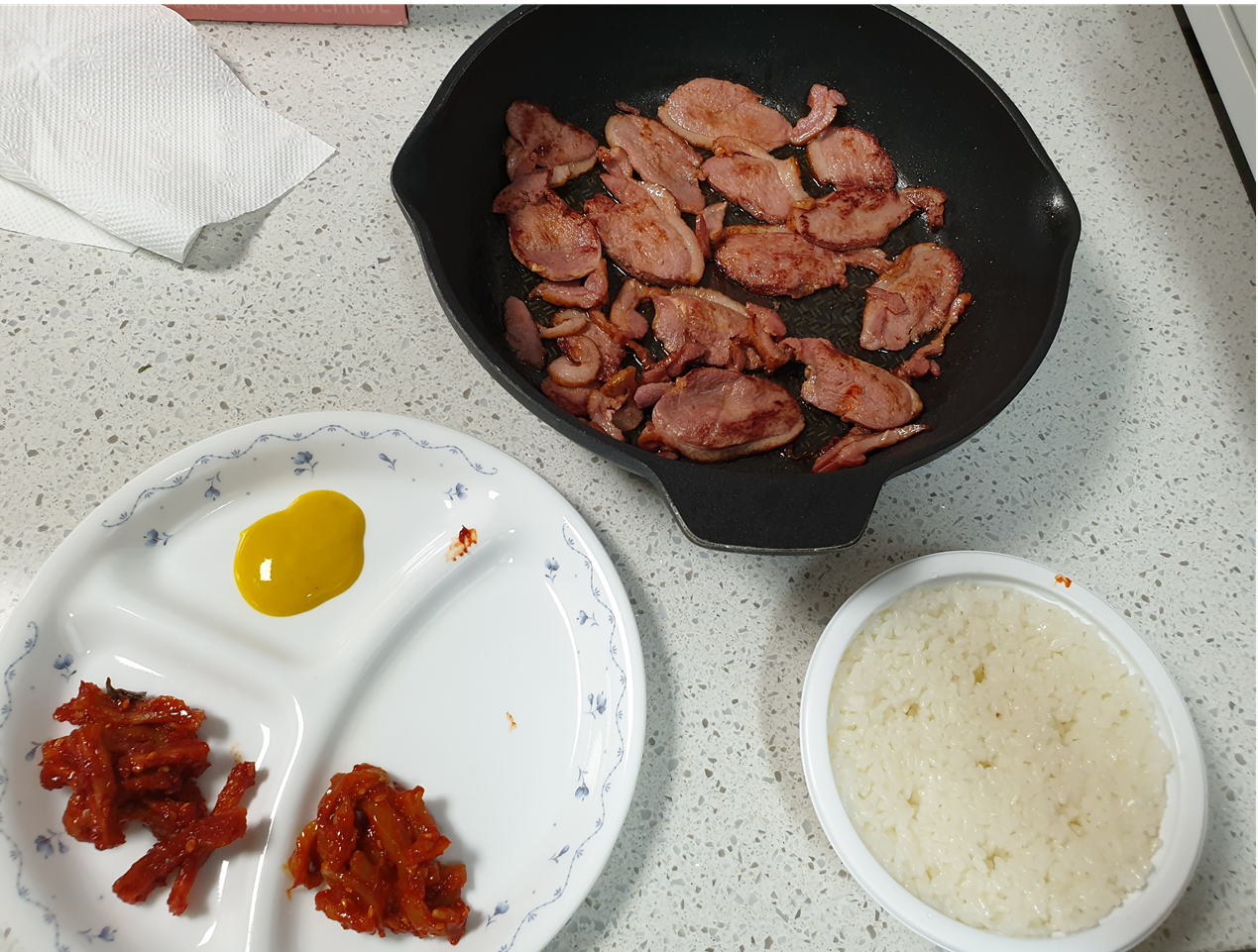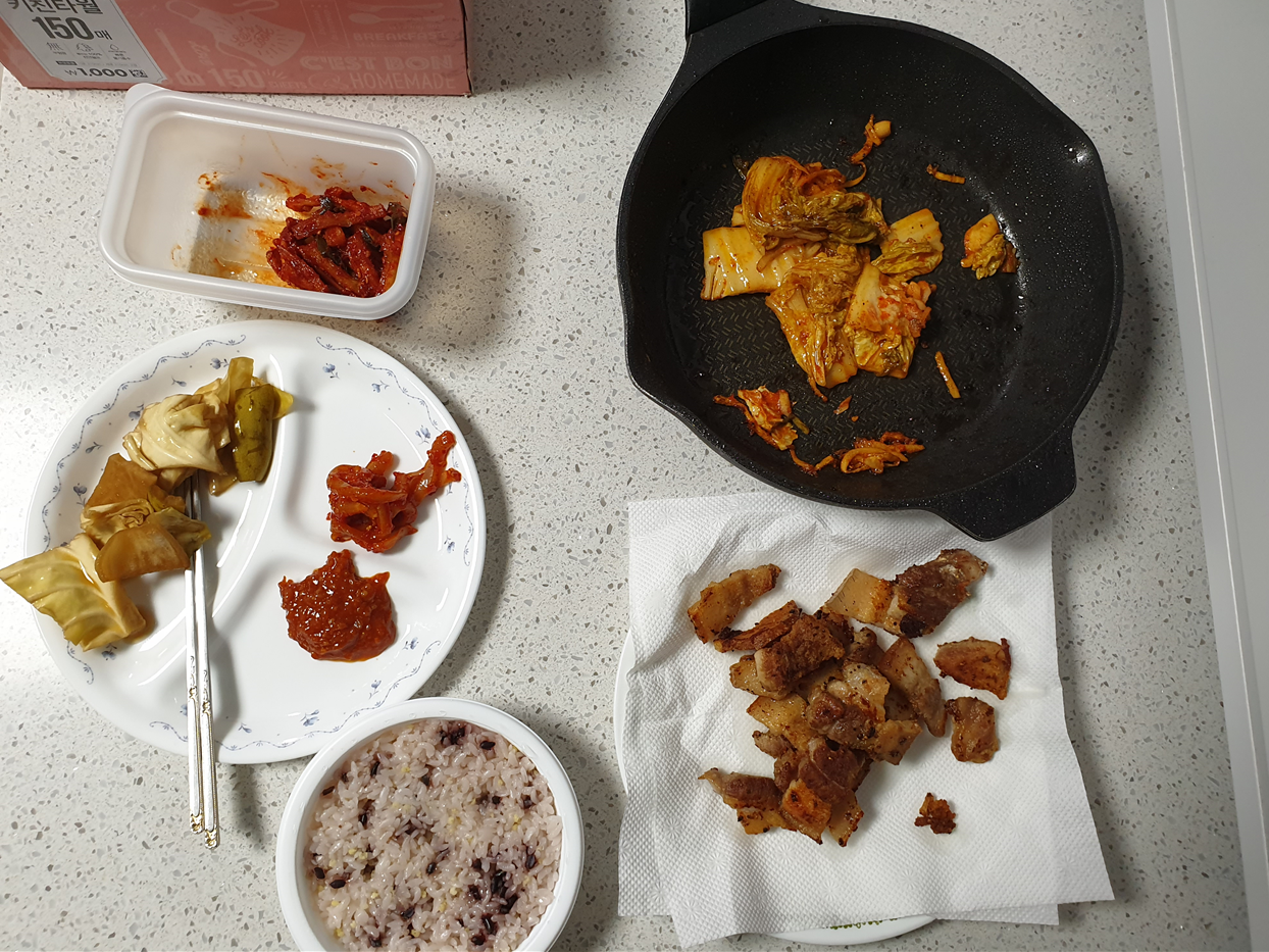 먹고 치우기도 괜찮고 맛도있는 고기장인에서 삼겹살을 시켜먹었다 ㅎㅎ