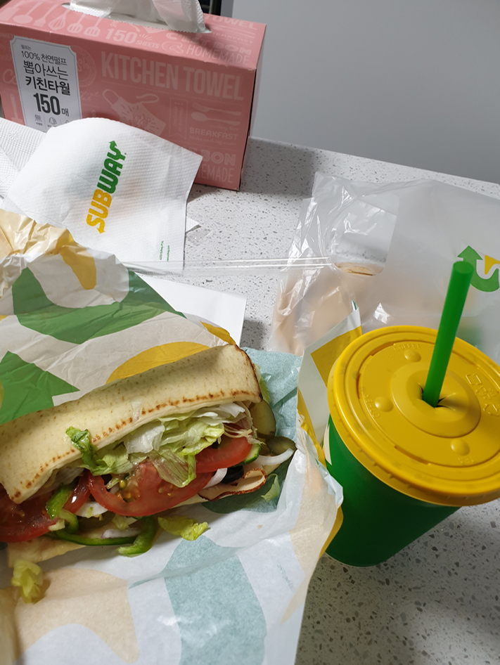 안과에서 오면서 서브웨이 할인 이벤트를해서 바로 포장해왔다 ㅎㅎ