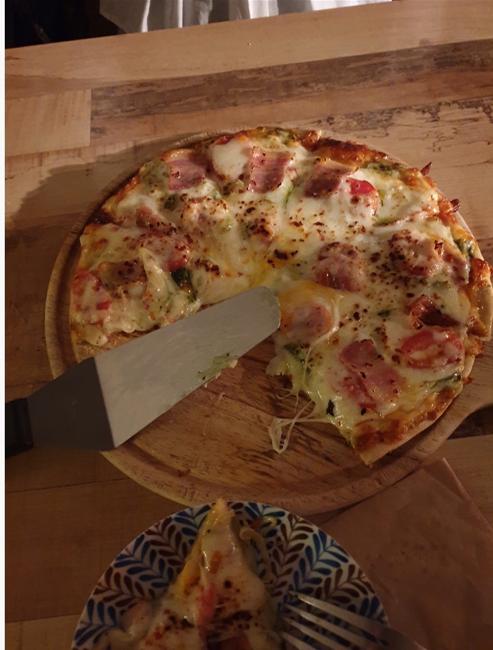 시금치를 좋아하진 않는데 시금치 피자도 맛있게 먹었다 :)