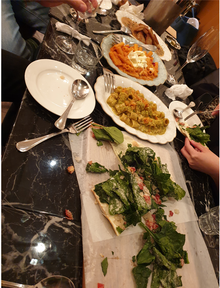 여러가지 메뉴와 와인 한 병을 시켜서 나눠먹었는데 다 맛있었다.