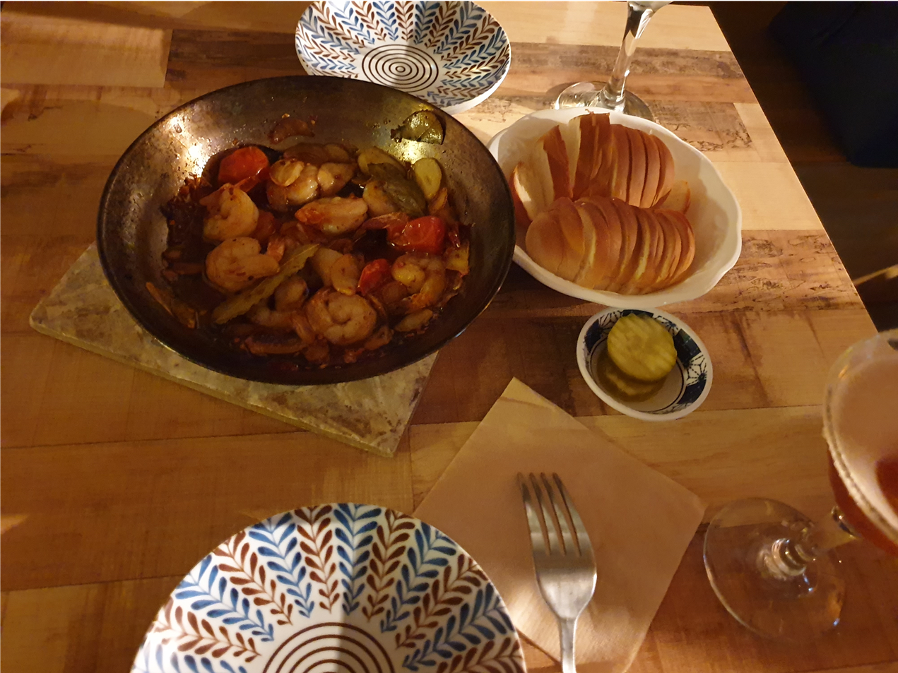 감바스, 피자와 함께 칵테일을 마셨다.