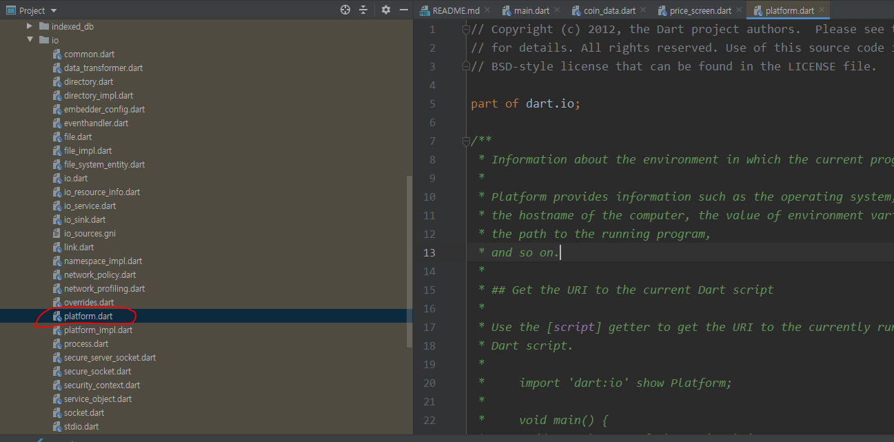 여기서 show 는 이 io 패키지의 Platform 파일만을 사용하겠다는 뜻이다.