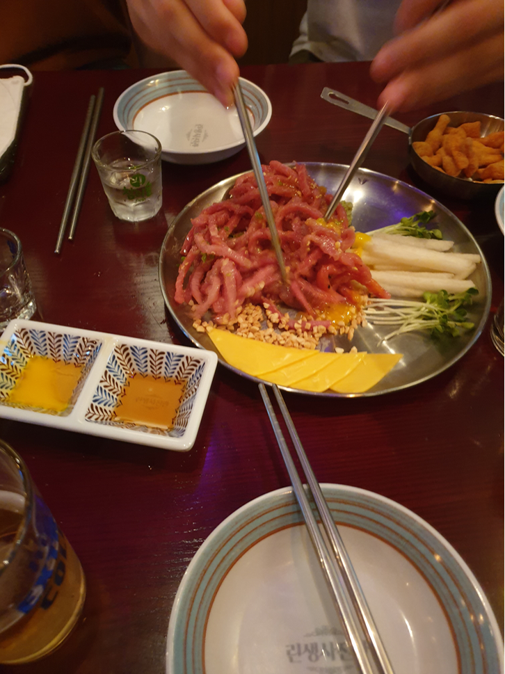 린생사진관에서는 육회를 먹었는데 그럭저럭 먹을만 했다.