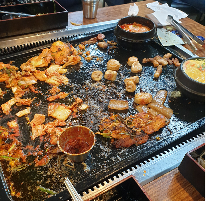 삼겹살에 이것저것 코스요리로 엄청 나오는데 가성비 하나는 끝내주는거같다.