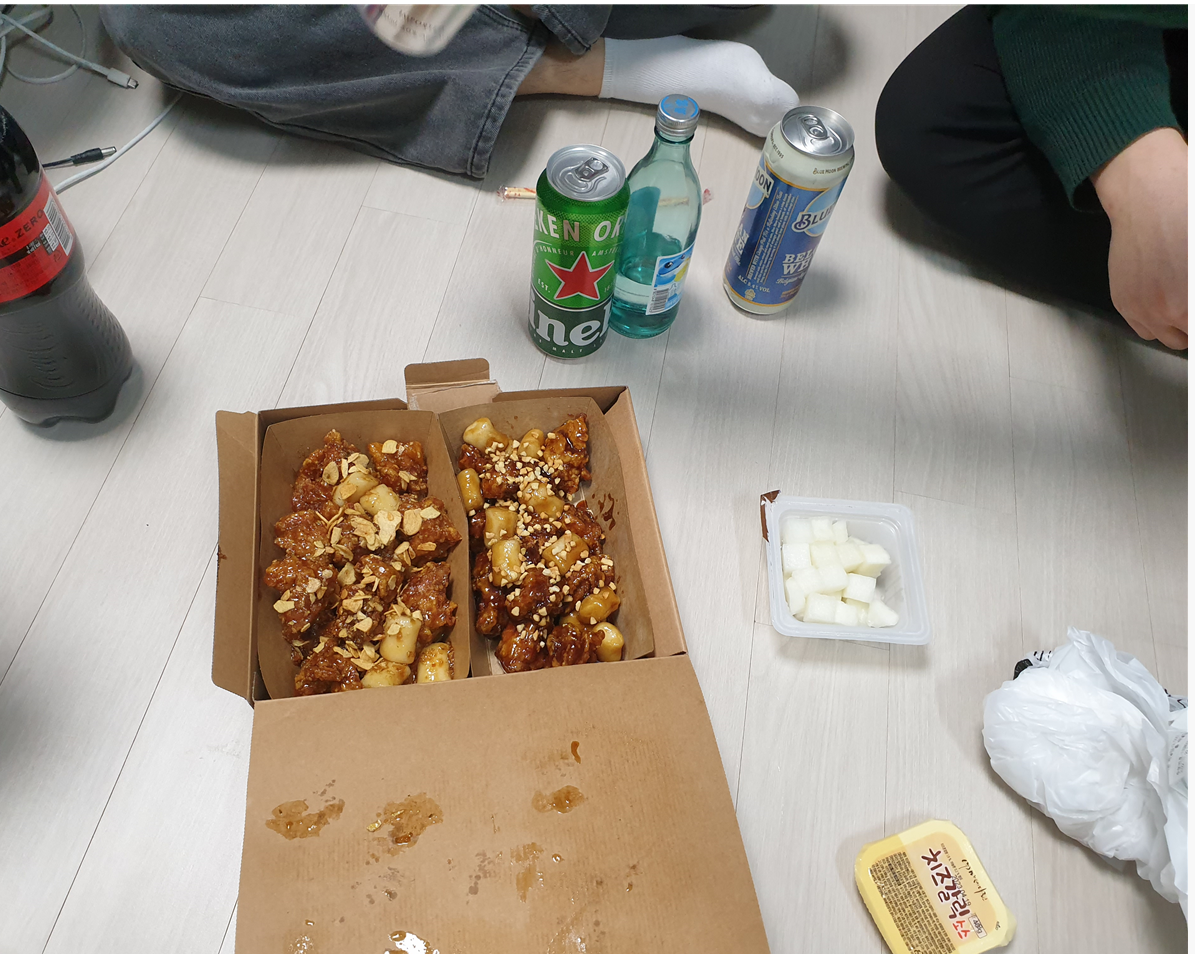 그다음 내 자취방에서 가마로 닭강정을 시켜먹었다.