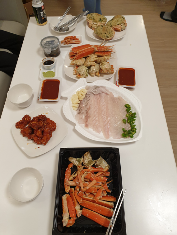 저녁에는 아버지 정년퇴임 및 내 생일 축하파티와 함께 속초수산시장에서 사온 대게, 닭강정, 회를 폭식했다.