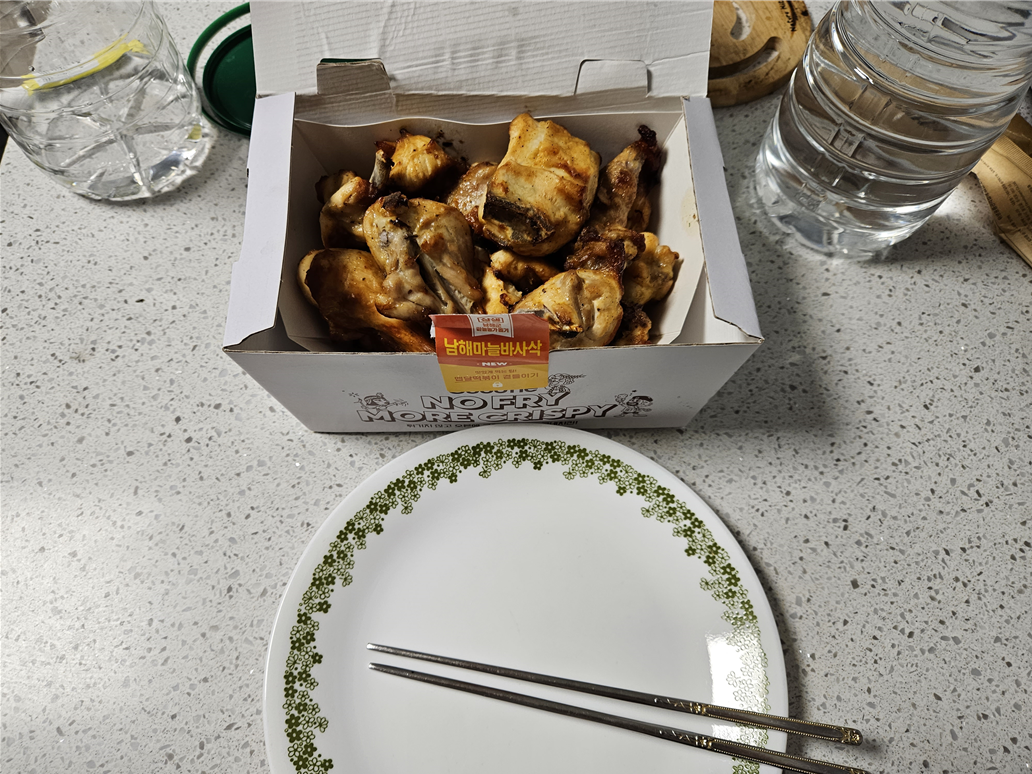 저녁에는 단백질 보충겸 굽네치킨 오리지널을 포장해왔다.