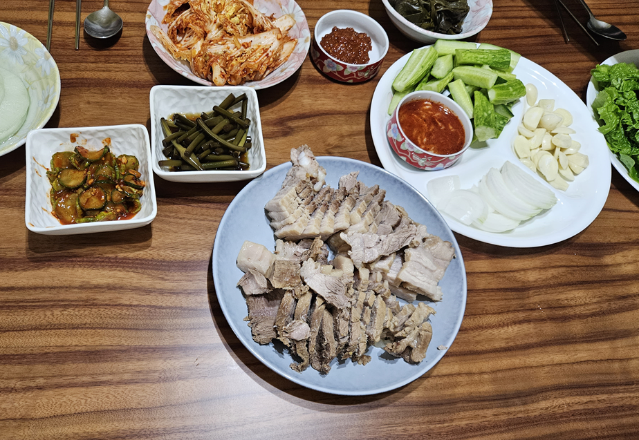 저녁으로 엄마가 보쌈을 해줬는데 꿀맛이었다.