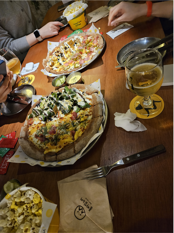 맥주 종류도 다양하고 안주도 맛있고 무엇보다 팝콘과 헛깨수차가 무제한이고 넘 맛있었다 ㅎㅎ