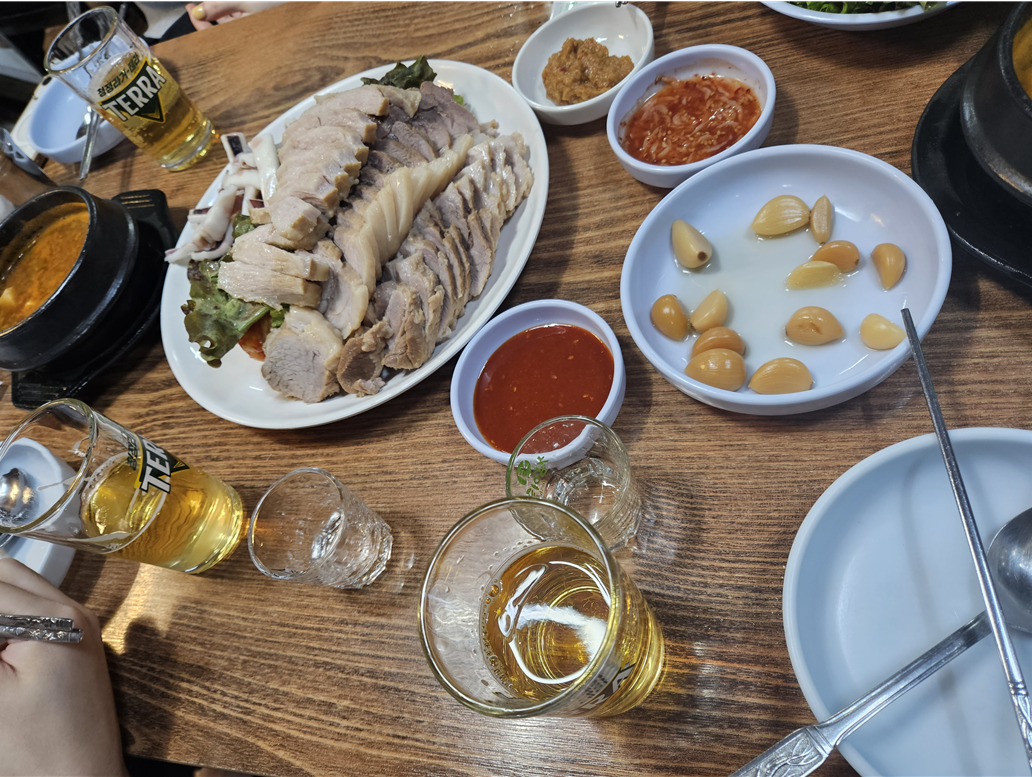 사진을 맛있게 찍진 못했지만 김치와 보쌈 모두 맛있었다. ㅎㅎ