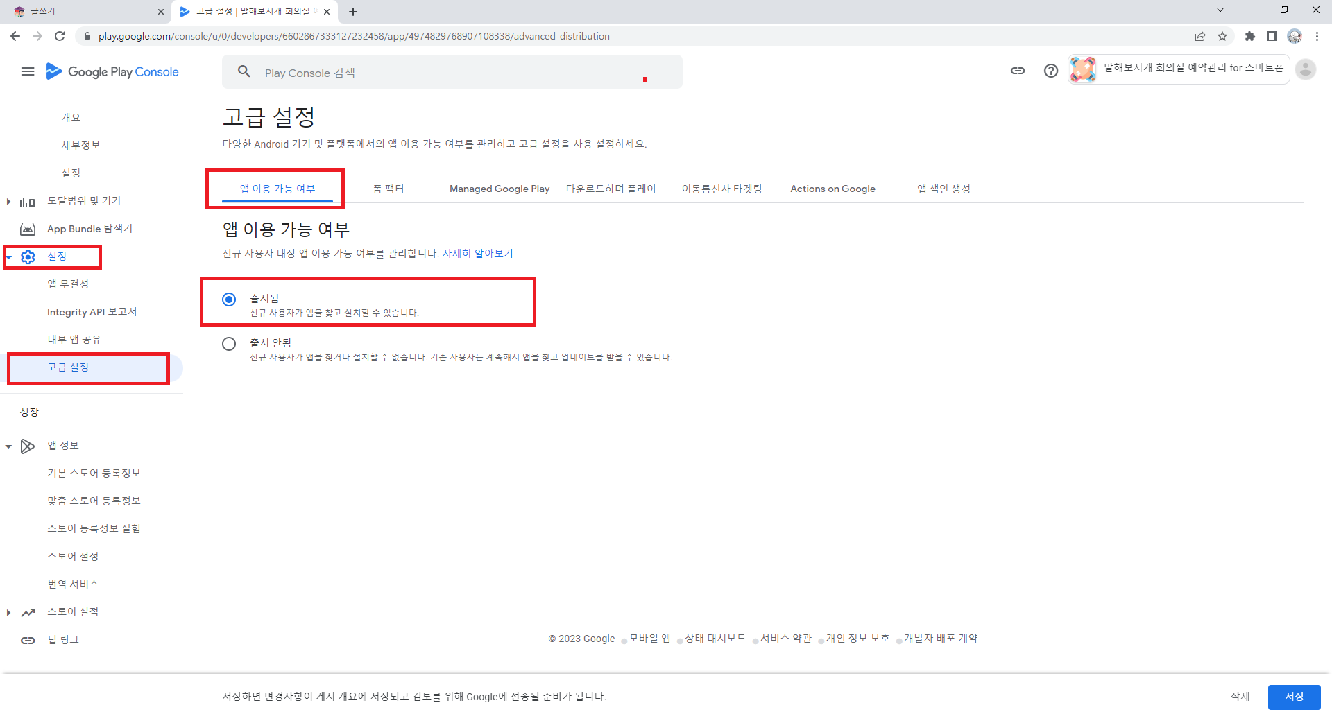 게시 취소했던 앱을 다시 재출시 상태로 바꾸었다.