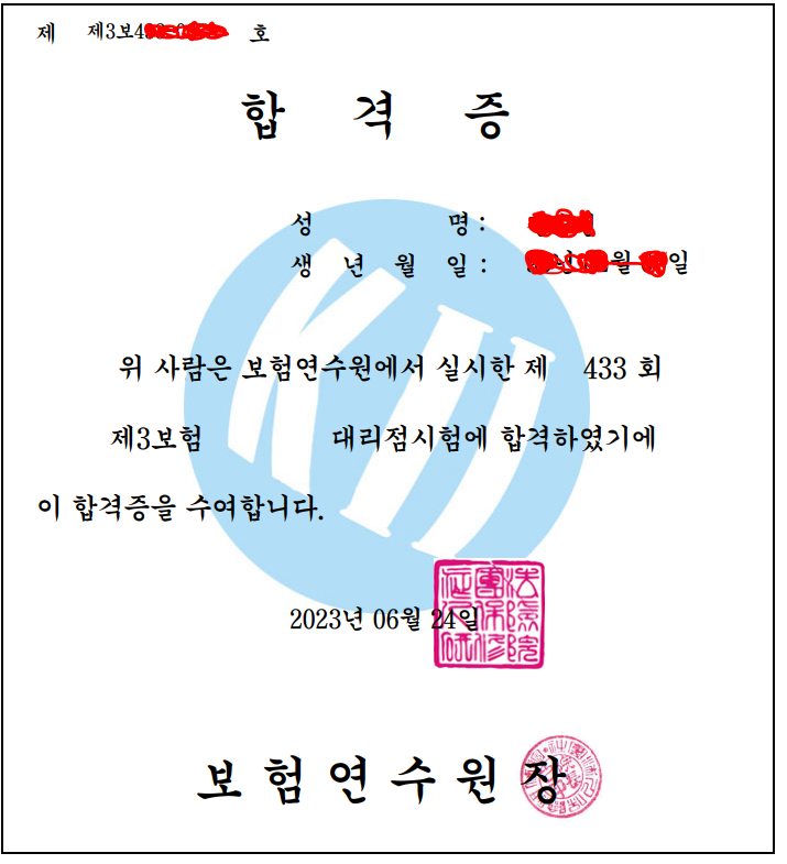 생명보험과 제3보험을 같이 보험대리점 자격증 시험을 봤다.