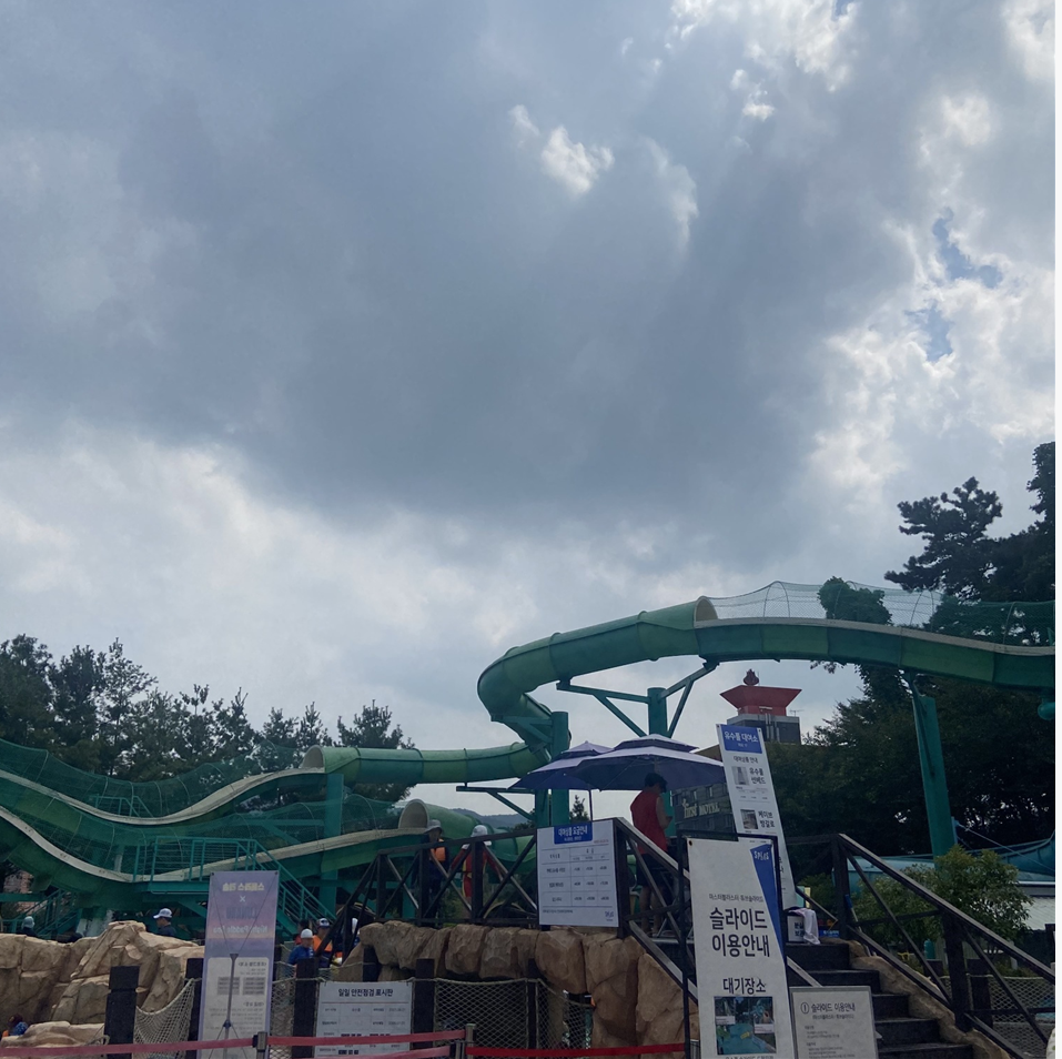 저 워터슬라이드 타는데 1시간을 넘게기다려서 탔는데 내려오는덴 1분도 안걸린다는게 허무했다. ㅎㅎ