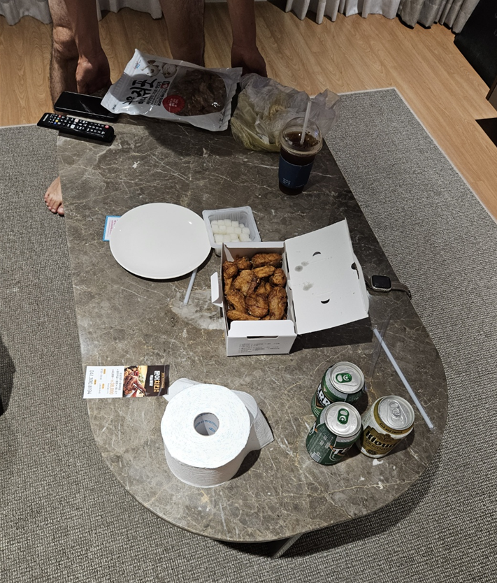 저녁으론 숙소 시설에 교촌치킨이 있어서 포장해와서 치맥을 했다!