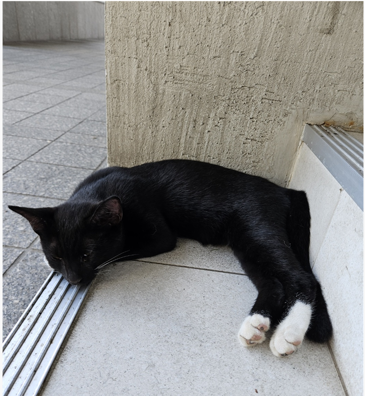 옆 계단에 귀여운 검정고양이가 있어 찍어봤다.