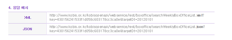 | http://www.kobis.or.kr/kobisopenapi/webservice/rest/boxoffice/searchWeeklyBoxOfficeList.json?key=430156241533f1d058c603178cc3ca0e&targetDt=20120101 |