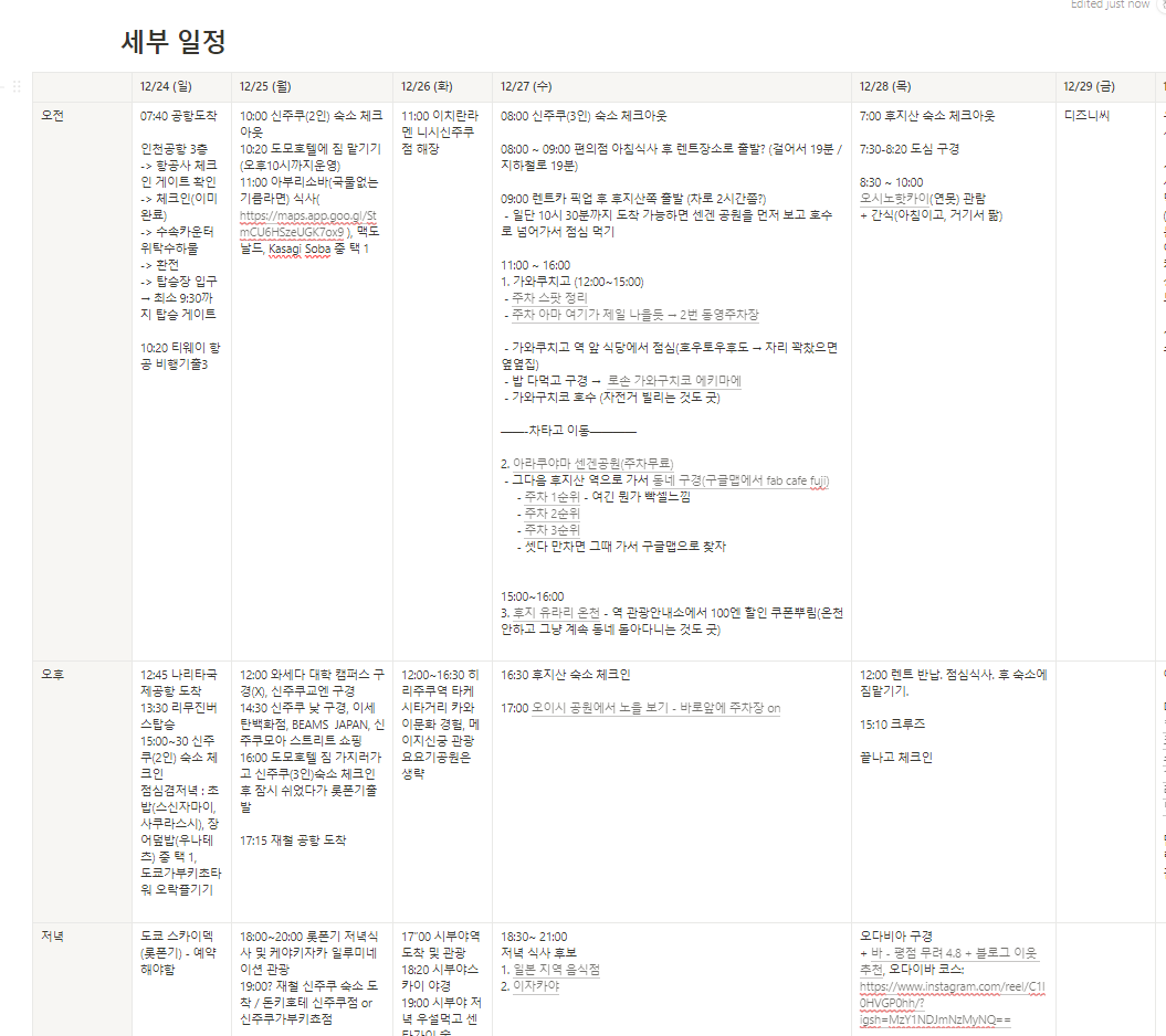 그 후 컴공(?)스럽게 노션으로 여행일정을 공유와 함께 화상회의로 계획을 다 세웠다.