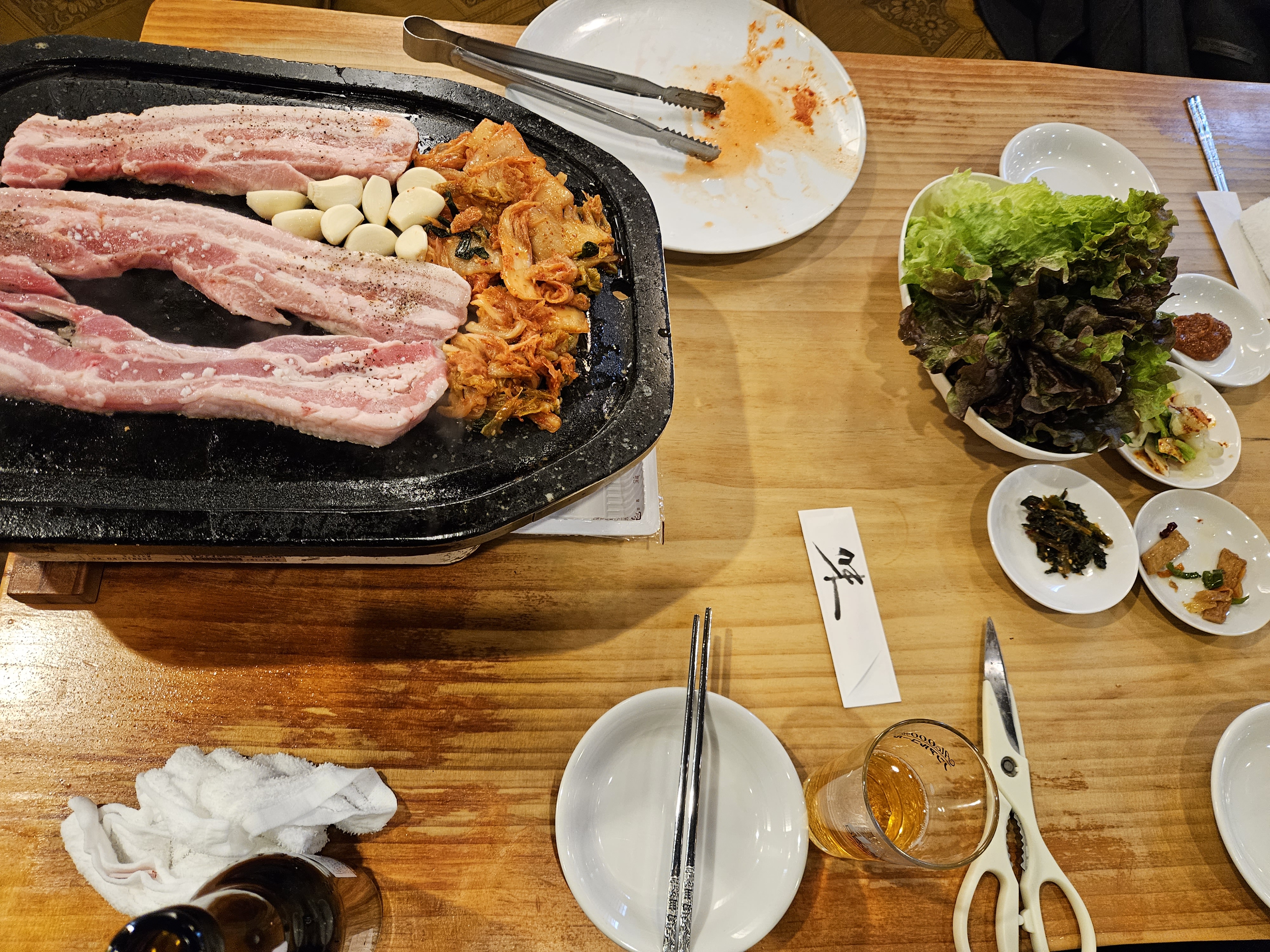 2차로는 급 삼겹살이 떙겨서 걸어서 한 15분? 거리에 있는 삼겹살 집에 갔다 ㅎㅎ