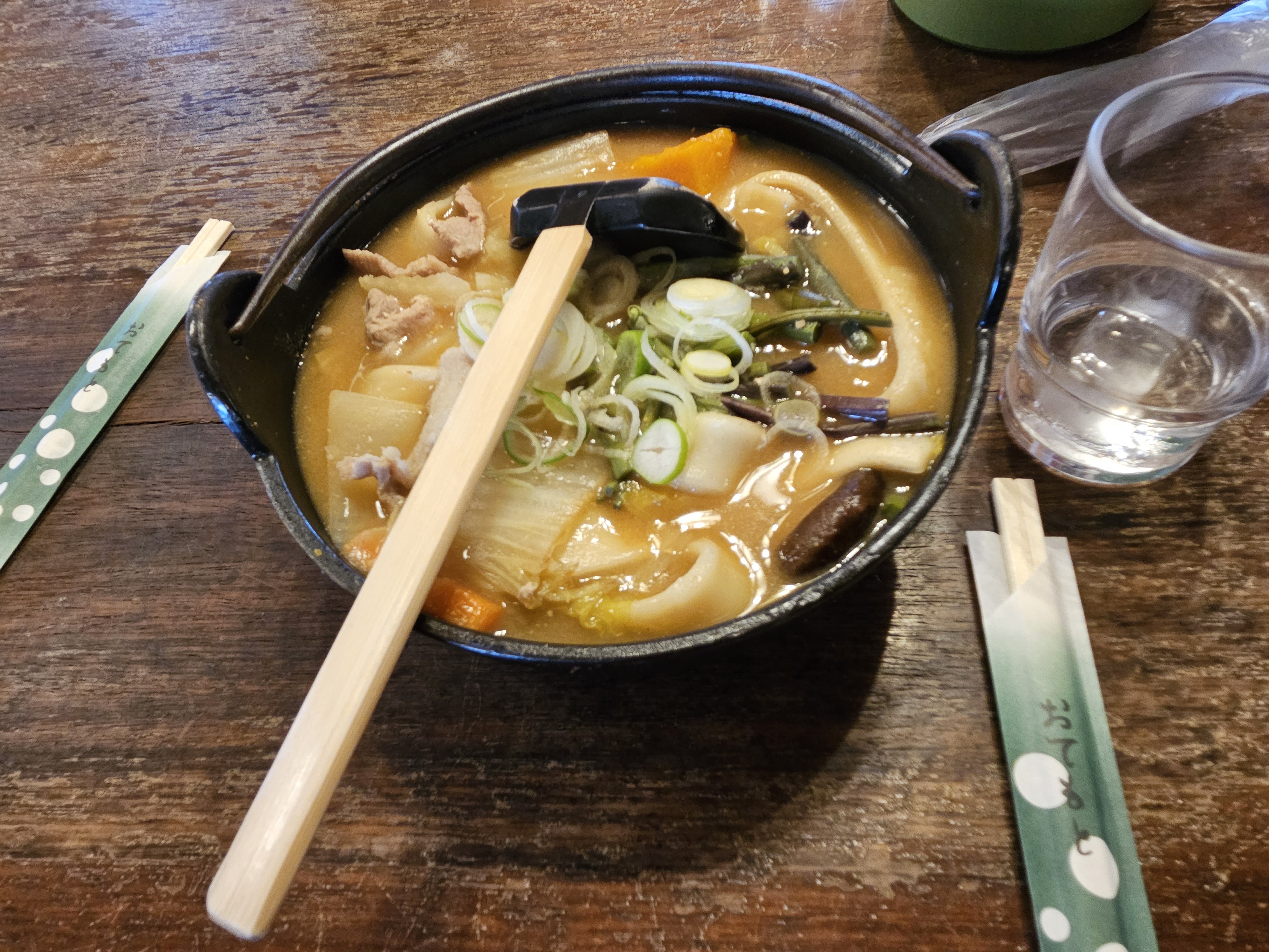 일본 된장에 굵은 칼국수와 여러 재료가 들어있는데 처음먹어보는 맛이라 색다롭고 맛있었다.