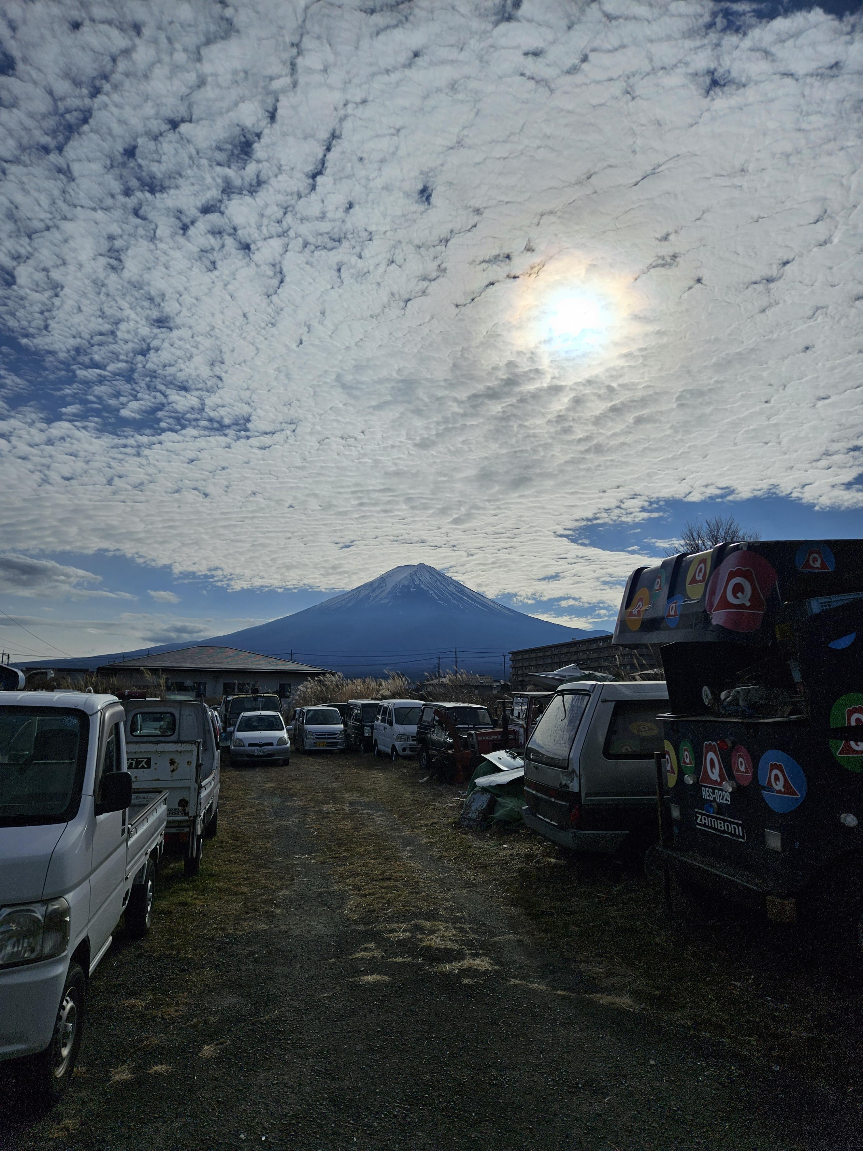 폐차들 뒤에 후지산만 있을 뿐인데 빛이난다. ㄷㄷ