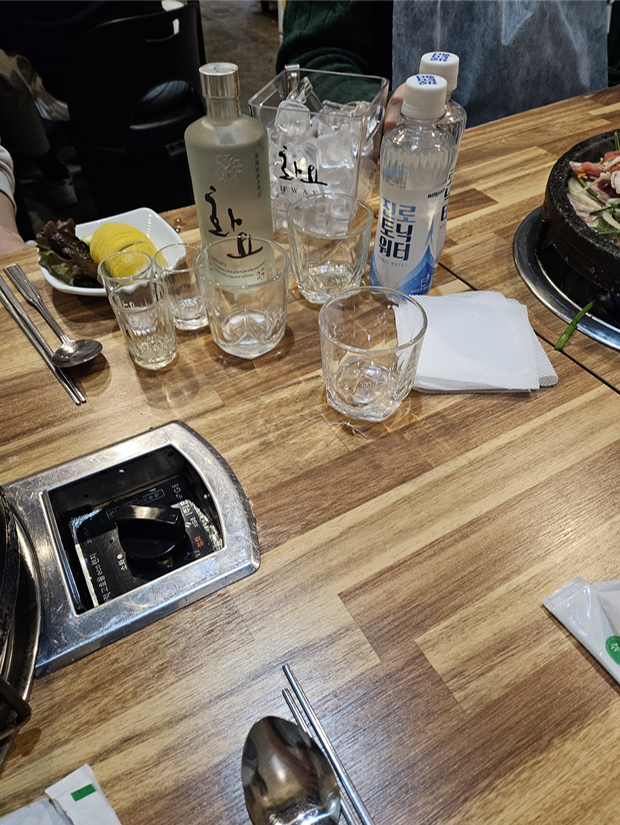 이날은 청하로 달렸는데 인당 3병은 먹었었는데 확실히 일반 소주보다 취기가 덜 했다.