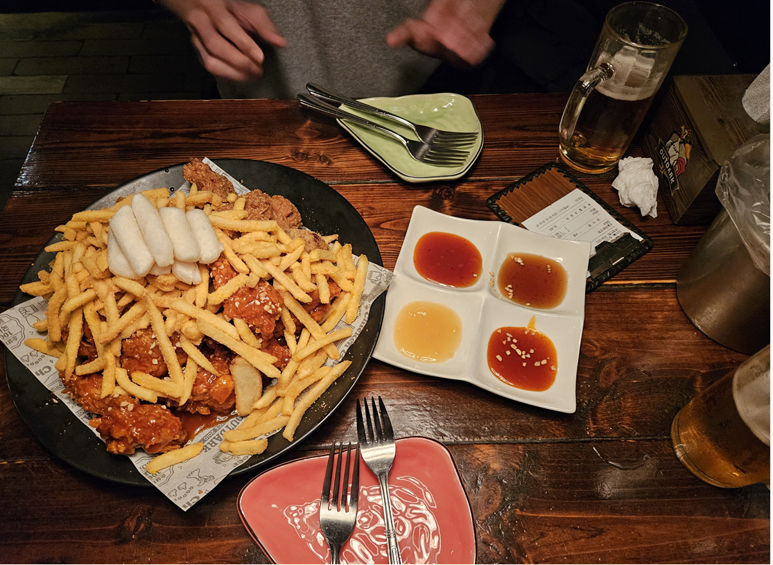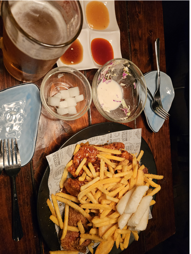 다섯명이 앉기에 테이블이 조금 좁고 술집이 시끄럽긴 하지만 맛은 괜찮았다.