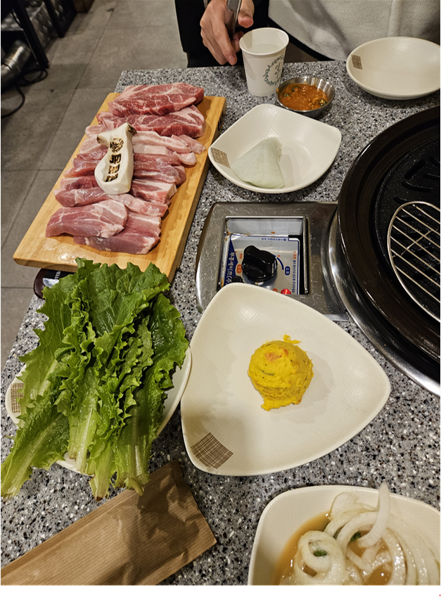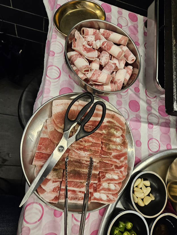 냉반쟁삼이라는 집에서 냉동삼겹살을 먹기도 했다.