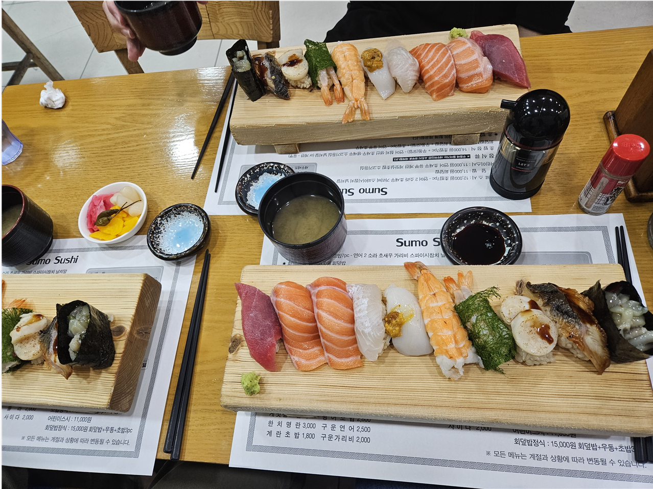 토요일에는 저녁에 또 맨날 보는 동네 고등학교 친구들과 동네 근처 스모스시 초밥을 먹으러 갔다!