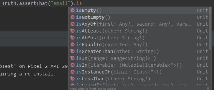 testImplementation "com.google.truth:truth:1.0.1"